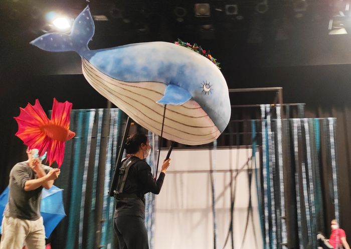 Az óvodásoknak és kisiskolásoknak szánt történetben egy fiatal bálna és egy kisfiú barátságát mesélik el az alkotók, Markó-Valentyik Anna Junior Príma-díjas rendező, Bartal Kiss Rita Blattner Géza-díjas tervező és Markó Róbert dramaturg. Az egyszerűen stilizált díszletben a színes tengeri élővilág kel majd életre a színészek és a szereplőket formáló óriásbábok segítségével. Cseri Hanna zeneszerző akusztikus világa támogatja a vizuális történetmesélést. A Kabóca a bemutatót április közepén tartja, a jelenlegi tervek szerint zárt ajtók mögött.