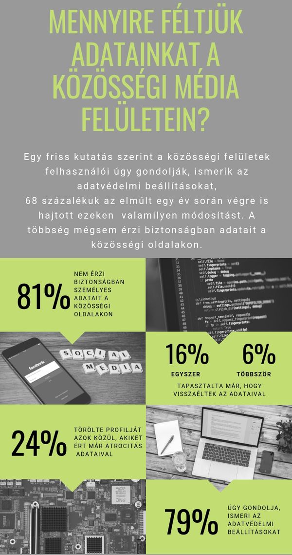 Abban a tekintetben, hogy milyen típusú adatainkat féltjük a közösségi térben, ugyancsak izgalmas eredményt hozott a kutatás: a megkérdezettek legnagyobb hányada, 37 százaléka, az ügyintézéshez szükséges, például banki vagy ügyfélkapus jelszavait félti. Minden ötödik felhasználó számára a személyes adatok biztonsága a legfontosabb, de érdekes, hogy fotóikat, videóikat csak fele annyian (7 százalék) féltik, mint pl. a levelezésüket, üzenetüket (14 százalék).