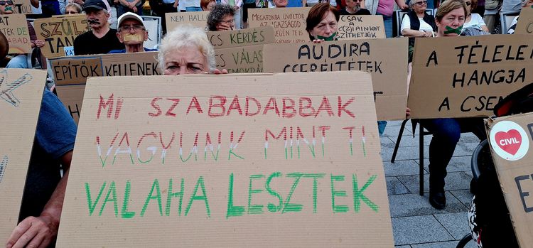 – A most megszavazásra váró törvény következménye, hogy nem lehet majd kérdezni, kritikát megfogalmazni, felemelni a hangunkat – mondta Szalóki Viktor, az aHang politikai igazgatója. – Akik ezt megszavazzák, azoknak történelmi bűnük lesz az ország tönkretételében. Ez nem törvényhozás. Ez árulás, a szabadság és a demokrácia elárulása. Ennek a következményeit pedig viselniük kell. A némaságot akár egyetlen szóval is megtörhetjük. Most, amikor egy olyan törvényt akar elfogadni a hatalom, amely elnémítana minden kritikus hangot, szabad sajtót és független civil szervezetet, akkor még nagyobb szükség van arra, hogy hangosak legyünk és beszéljünk egymással. A kormány a „közélet átláthatóságáról” beszél, miközben valójában listáznának, ellenőriznének és elhallgattatnának. Egy új, politikai rendőrségként működő hivatal, a Szuverenitásvédelmi Hivatal dönthet majd arról, hogy ki számít „külföldi ügynöknek”. Nem bizonyítékok alapján, hanem politikai szándék szerint. Ha valakit kiszemelnek, jön a jogi, adminisztratív és pénzügyi ellehetetlenítés. És ne legyen kétségünk: ez nem csak országos ügy. Ez a törvény sújtani fogja azokat az itteni civil szervezeteket, amelyek bármilyen kritikát megfogalmaznak és azokat a szerkesztőségeket, amelyek kérdéseket mernek feltenni. Itt, köztünk is lesznek áldozatai ennek a cinikus elnémítási törvénynek. Pedig mi, civilek nem vagyunk veszélyesek, nem vagyunk bűnözők! Ha innentől így kezel majd minket a hatalom, hát üzenjük nekik: nem fogunk feltett kézzel levonulni a pályáról! Nem hátrálunk meg! És soha, de soha nem fogunk elnémulni!