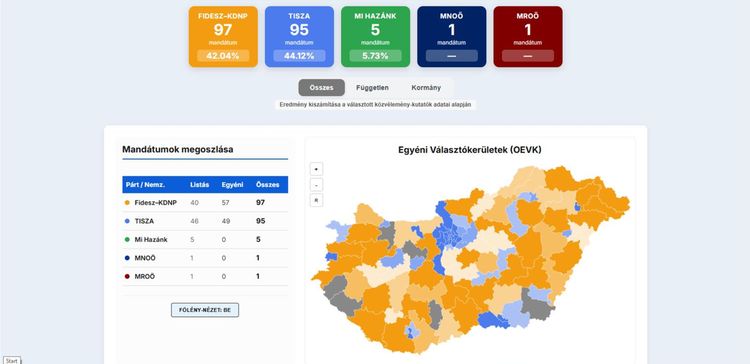 A választási monitor pillanatnyi állása szerint a Fidesz–KDNP összesen 97, a Tisza Párt 95 képviselőt tudna a Parlamentbe juttatni. A Závecz szerint 120 tiszás, 72 fideszes, a 21 Kutatóközpont szerint 131 tiszás, 61 fideszes képviselő jutna be a Parlamentbe. Ez az arány egézen más a kormányhoz közel áló közvélemény-kutatók szerint. A Nézőpontnál 117 fideszes, 70 tiszás, az Alapjogokért Közpomtnál 123 fideszes, 69 tiszás az állás.