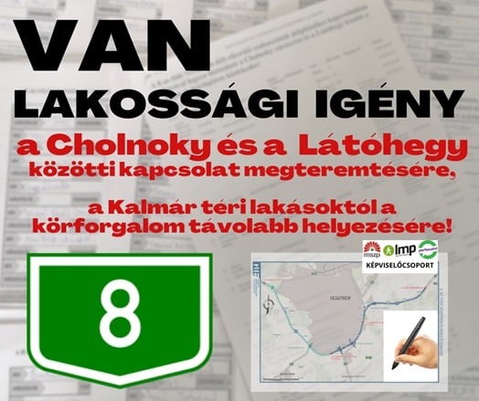 Több száz aláírás gyűlt össze annak érdekében, hogy a 8-as főút Veszprém déli elkerülő szakaszának átépítéséhez kapcsolódóan a Cholnoky városrész és a Látóhegy között aluljáróval legyen biztosított a gyalogos és kerékpáros közlekedés, tehát van lakossági igény a Cholnoky városrész és a Látóhegy közötti kapcsolat megteremtésére!