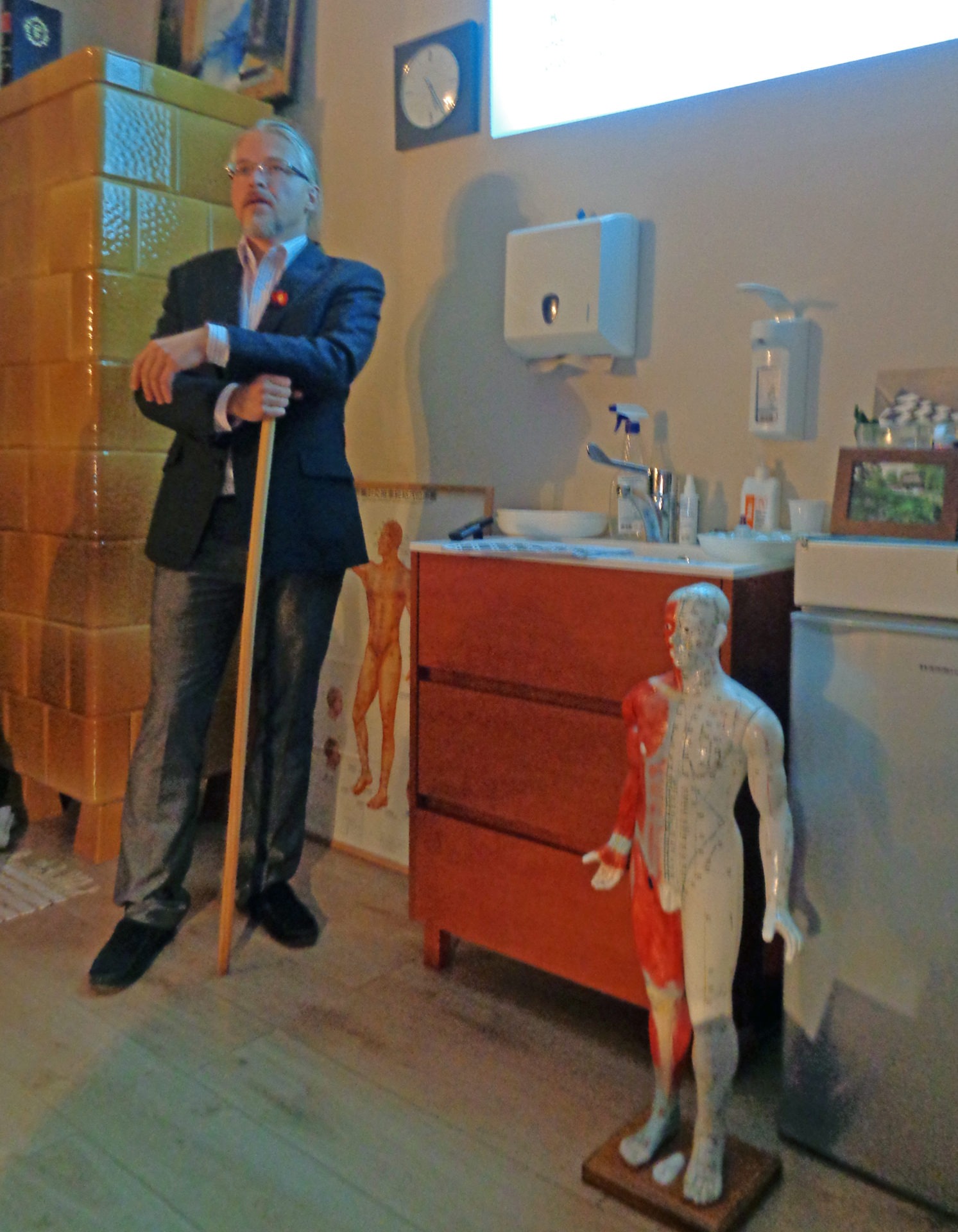 A népes hallgatóság betöltötte a kis teret, halk zene szólt, a füstölő illatú rendelőnek egészen különös atmoszférája volt, ültünk mindenhol, széken, fotelban, kanapén, padon, kissámlin, zsámolyon és vizsgálóágyon.