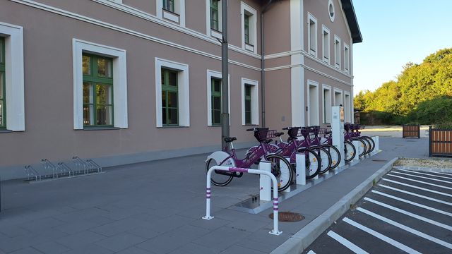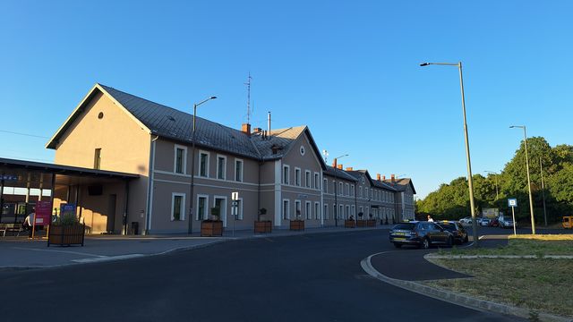 Az állomásépület homlokzata messziről nézve mutatós, bár a színét még szokni kell. Ízlés dolga persze, de az a békebeli „vasútsárga” jobban illene hozzá. Kár, hogy tetőcserére nem futotta, a régi, szürke palatető úgy „áll rajta”, mint elegáns estélyi ruhán öreganyám barhentkendője. Az odavezető út és előtte a gyalogos közlekedő teljesen felújítva, a főbejárat és a vágányokra nyíló kijárat akadálymentesített, az ajtók automatikusan nyílnak. Az épület előtt bérelhető elektromos kerékpárok sorakoznak. Szép a váróterem a modern utastájékoztatóval, ízléses, kicsit a régire hajazó padokkal, kulturált mellékhelyiségekkel (igaz, este fél nyolckor, amikor a fotók készültek, kissé szemetes volt). Rendben van az épület hátsó frontja is, színes virágokkal lehet majd tovább csinosítani tavasszal. Oldalt, a lépcsők mellett jegyautomata, menetrendkijelző, kutyachip-leolvasó eszköz. Utóbbi abszolút bónusz, köszönet érte, akinek eszébe jutott!