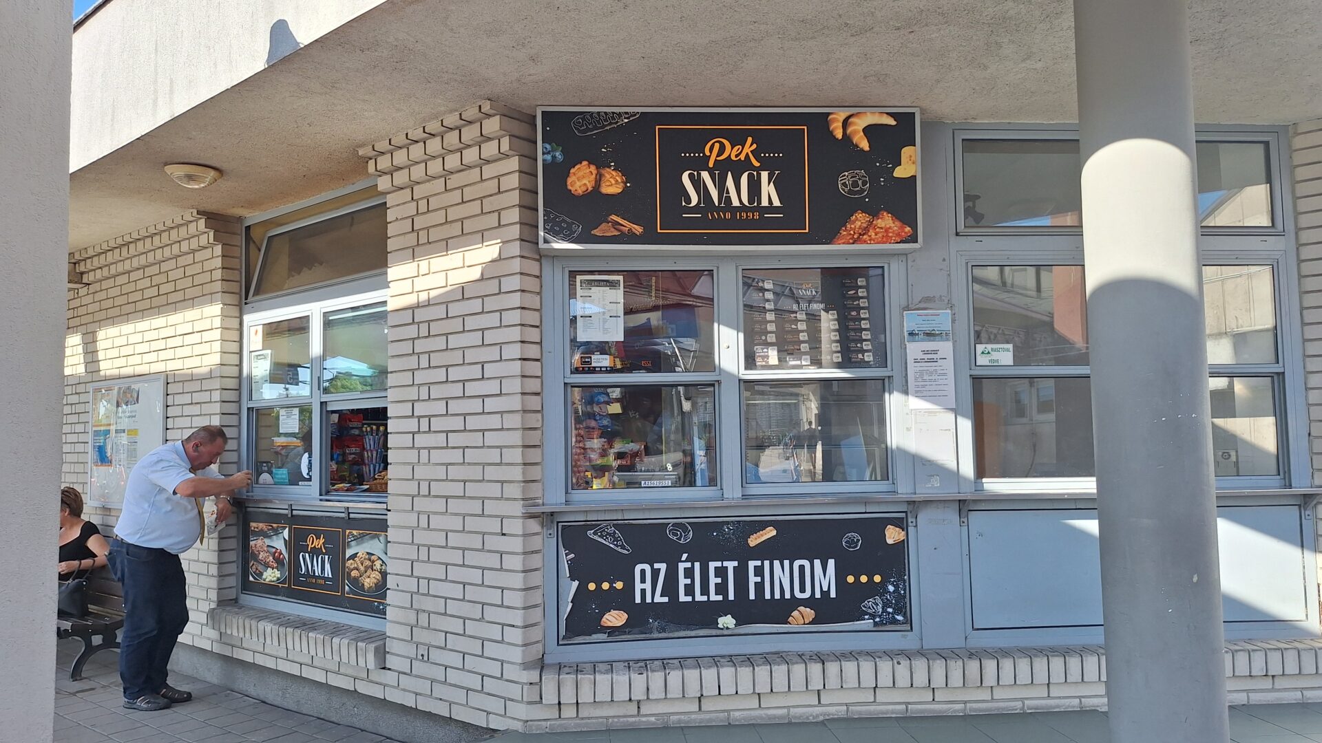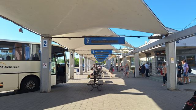 A buszok indulását elektronikus kijelző jelzi, ahogy a belvárosban is egyre több megállóban. A vasútállomás mellől helyi járatos és helyközi buszok is indulnak. És innen indulnak, ide érkeznek Ajkára/Ajka felől a pótlóbuszok, amelyek a két város között szállítják az utasokat. Ajka és Veszprém között hat évvel ezelőtt már felújítottak egy pár száz méteres szakaszt, de az újból beomlott. Az év elején még az állt az átszállásra figyelmeztető táblán, hogy a munkálatok fél évig tartanak. Azóta ezt átírták 2025 végére. (Viccnek sem jó, hogy a MÁV-csoport honlapja szerint az állomás területén van büfé, az épülettől száz méterre pedig posta.)