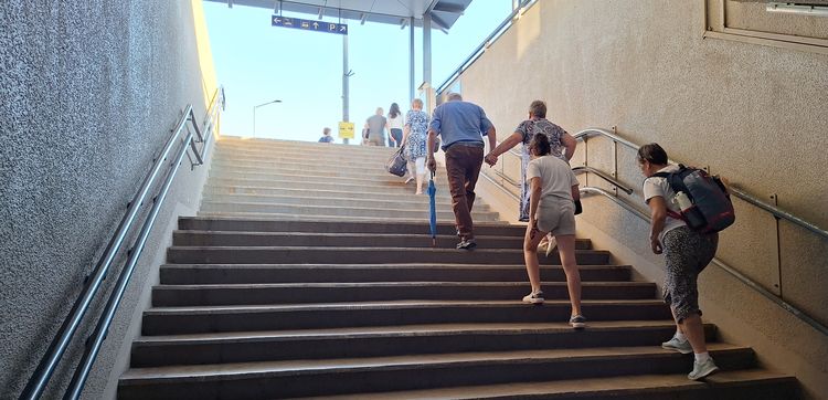 A legfájóbb hiány, hogy a vasútállomás felújításából kimaradt a vágányokhoz való feljutás akadálymentesítése. Jelenleg csak az ezeréves, rozsdásodó karfalift áll a mozgásukban korlátozottak rendelkezésére. (A karliftet úgy használhatja a kedves kerekesszékes utazó, hogy előtte telefonál a megadott számra, és bemondja, hogy pontosan mikor szándékozik igénybe venni a „szolgáltatást”. A megadott időben a vasútállomás egyik alkalmazottja fogja üzembe helyezni számára a karliftet. Ehhez szükséges két erős ember is, aki átemeli a liftre az utazót, illetve visszaemeli a kerekesszékbe. Eközben valaki le, illetve föl is viszi a kerekesszéket a lépcsőn. Ilyen egyszerű.) A mozgólépcső nem lenne megoldás, hiszen azt babakocsival, kerekesszékkel nem lehet használni. Marad a lift, ami drága is, meg bonyolult is, mert kettő kellene. Egy a főlépcsőnél, egy meg a külső peronoknál. És akkor még mindig ott a probléma, hogy a vonatlépcsőn hogyan jutnak fel a kerekesszékesek, az idősek, a kicsi gyerekekkel vagy nagy csomagokkal utazók, amikor ez még azoknak se könnyű, akik megfelelő kondícióval rendelkeznek.