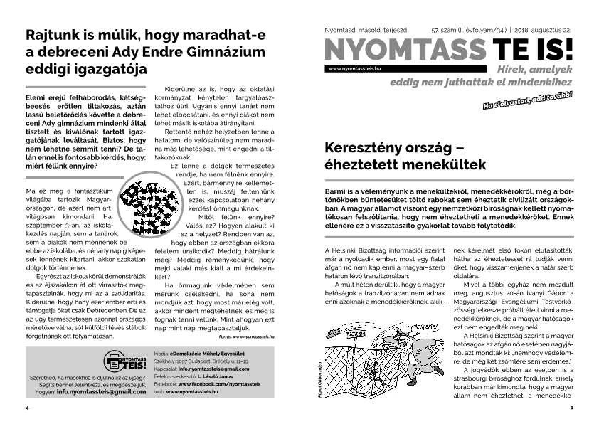 Ezek a Nyomtass te is! kis újság fő témái ezen a héten. Olvassa, nyomtassa, terjessze ön is, hogy mindenkihez eljussanak az állami média által elhallgatni kívánt hírek! Innen letöltheti.