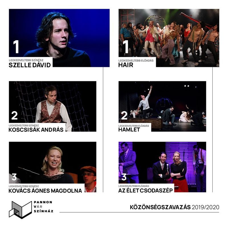 A Pannon Várszínház örömmel tudatja a nyilvánossággal, hogy bérletes nézői megválasztották a 2019/20-as évad legnépszerűbb színészét és előadását.