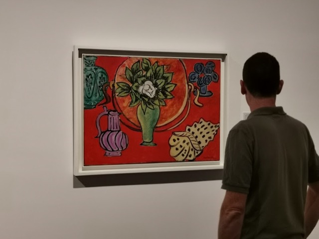 Budapesten ez az első Matisse-kiállítás. A több mint 100 művet felvonultató anyag a párizsi Centre Pompidou – Musée national d’art moderne remekműveire épül. Ebből ered a hiányérzetem is, mert nincs itt néhány olyan kapitális mű, mint a Kék ruhás nő 1937-ből vagy a Vörös szalon 1908-ból vagy A tánc ugyanebből a korszakból. Ezeket úgy látszik, másutt őrzik, valahol Zürichben, Bázelben, New Yorkban vagy Moszkvában.
