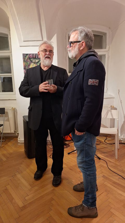 Angyalok és démonok küzdöttek benne, mondta megnyitójában Fenyvesi, őrjöngő látnoknak, intellektuális punknak, Veszprém sötét angyalának nevezve a festőt.