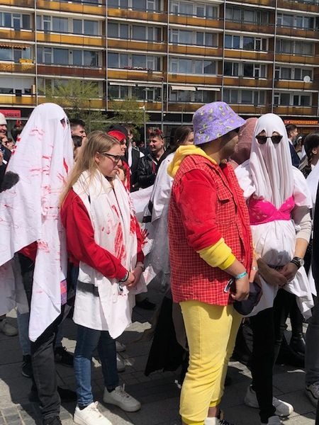 A hétfő éjféli Dörgedelem után egy másik hagyományos programmal folytatódott a jubileumi, XXX. Veszprémi Egyetemi Napok, azaz a VEN. A diákrektori címért versengő csapatok és jelöltjeik bevették a várost, és karneváli forgatagot idéztek az április végi keddre. Az önfeledten ünneplő egyetemisták láttán még a nap is kisütött.