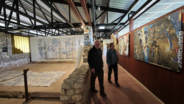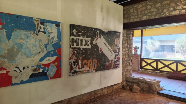 Izgalmas látvány, nagyszerű ötlet volt kihozni Géczi János dekollázsait a budapesti Műcsarnokban, majd a tihanyi apátságban megrendezett kiállítások után erre a szokatlan helyszínre, a balácapusztai Villa Romana Baláca falai közé. A szombati megnyitó előtt exkluzív tárlatvezetésben volt részünk a még készülő installációk között. Az alkotó engedélyével nemcsak megnézhettük, de meg is tapinthattuk a városok furcsa foszlányait. Végighúzhattuk ujjainkat a struktúrán, amit először is a napsütés, a szél, az eső roncsolt, majd lehasítva és kézműves technikával megdolgozva őket hozzátette a maga gesztusait az alkotó. Sérült felületeik már-már személyiségnek tűnnek. Tanújelek. Tanulmányozásuk közben költői világba érkezünk. A kentaurok világába.